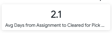 | Average # of Days from Copart Assignment to Cleared for Pickup | Average cycle time in days from Copart Assignment to Vehicle Clear for Pickup events across all assignments. | |