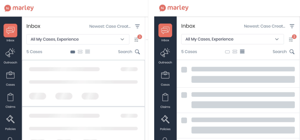 Inbox: Refreshed search bar, sort dropdown, loading states, and case counts for a cleaner, more informative view