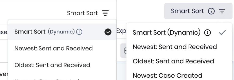 Before (left) and after (right) of the sorting selection dropdown within Inbox.