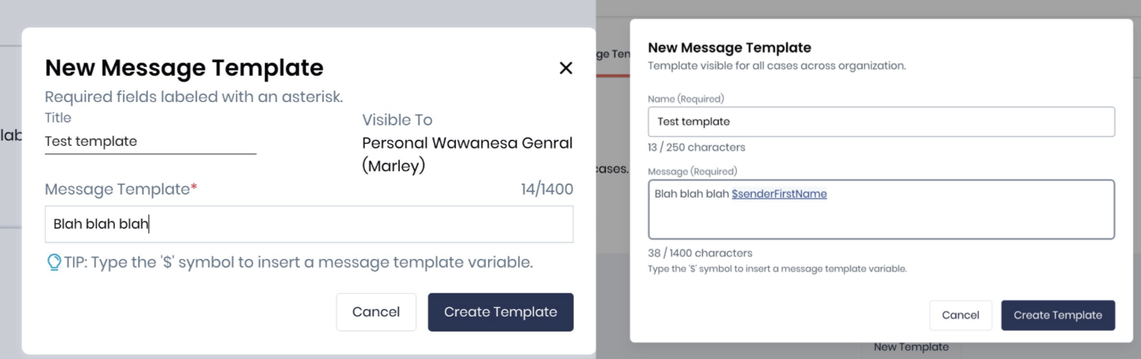 Message Templates: Enhanced modal, tab structure, empty states, and form inputs for better usability
