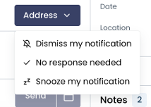 Dismiss for Myself — Quietly clear an Address Case notification from your own view without marking it as addressed for the rest of the team. This keeps shared accountability intact while giving individual operators a way to manage their own inbox.