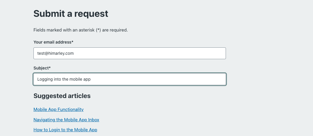 Smart article suggestions in the "Submit a Request" form when contacting Support