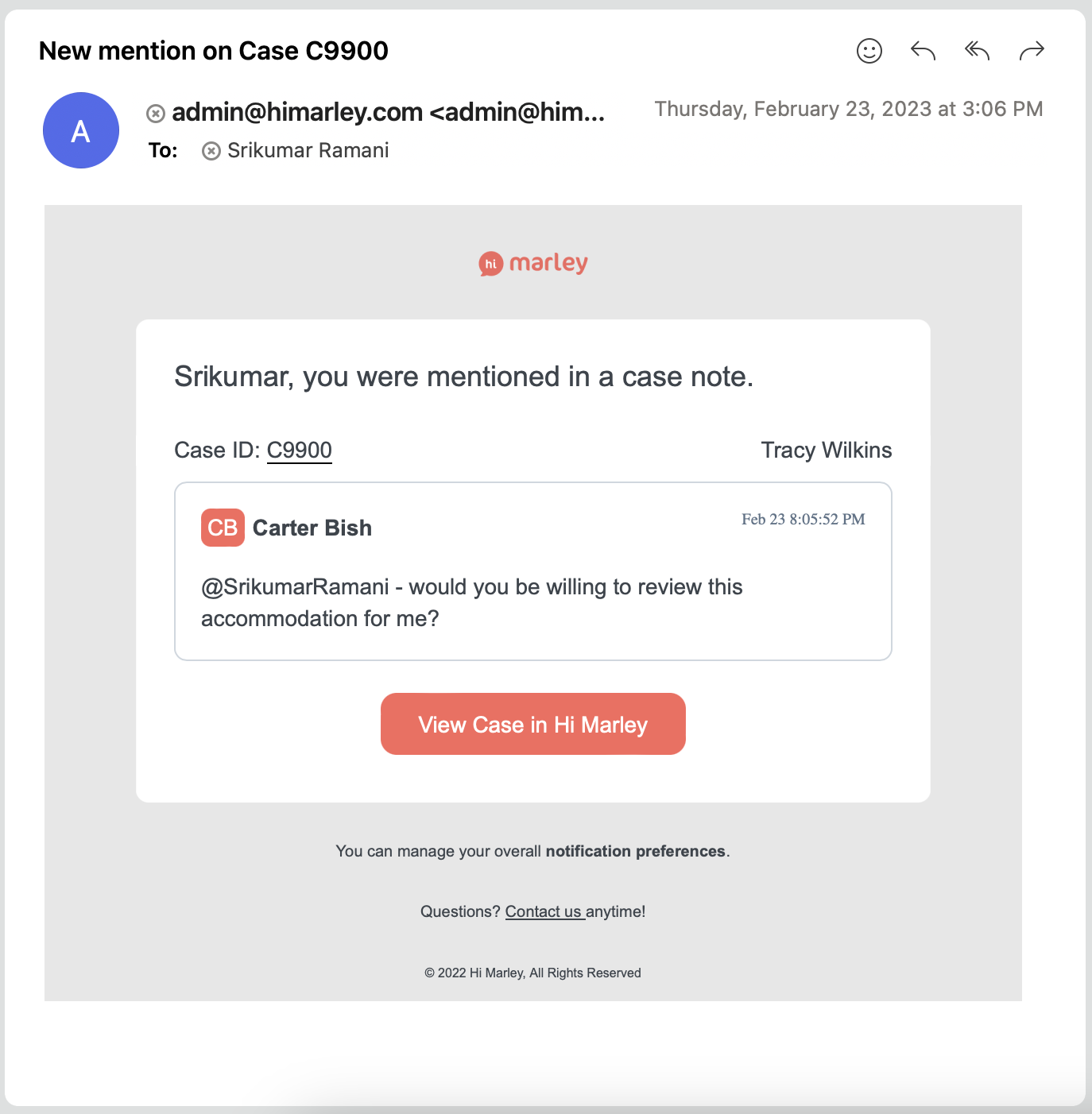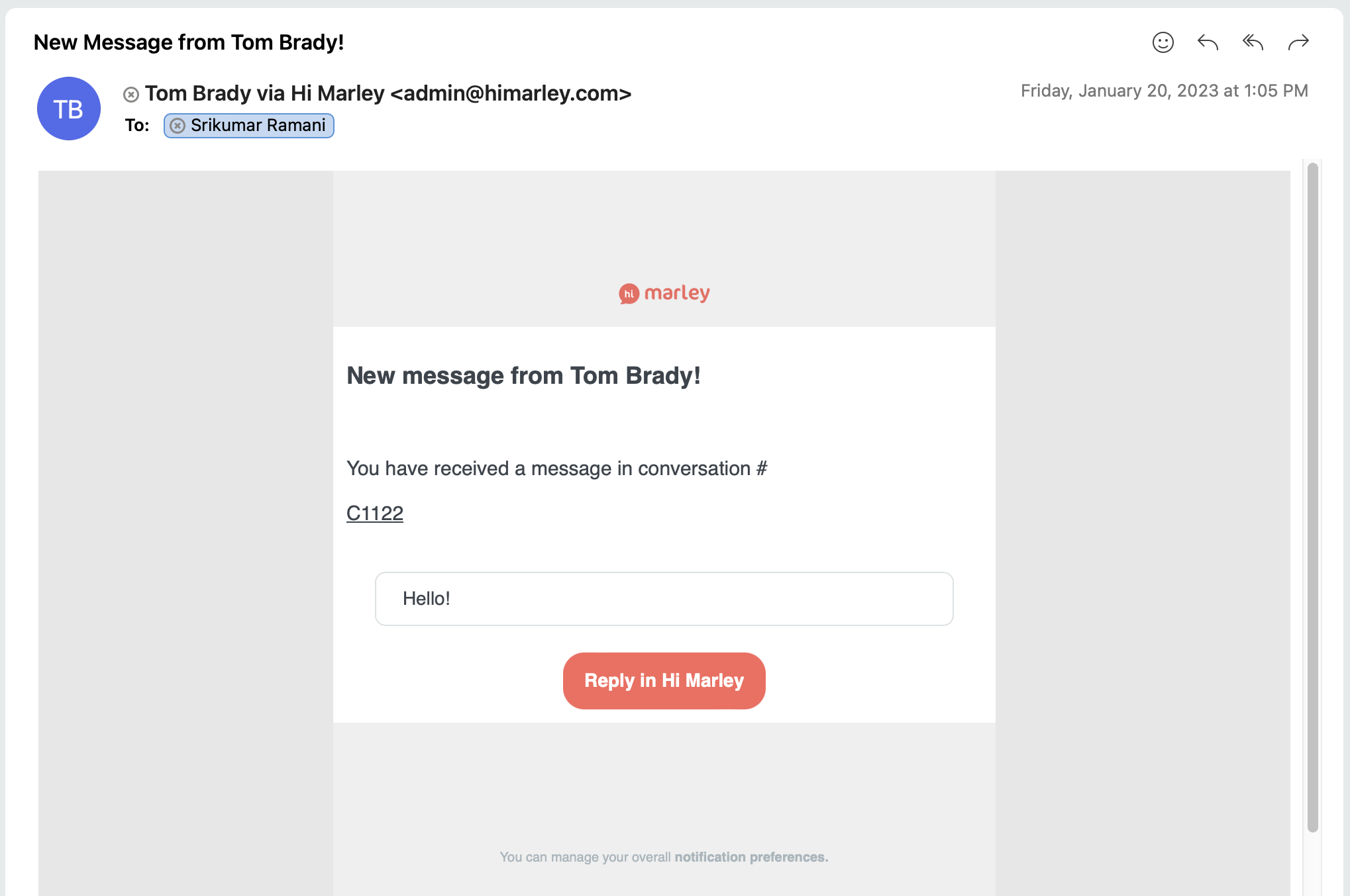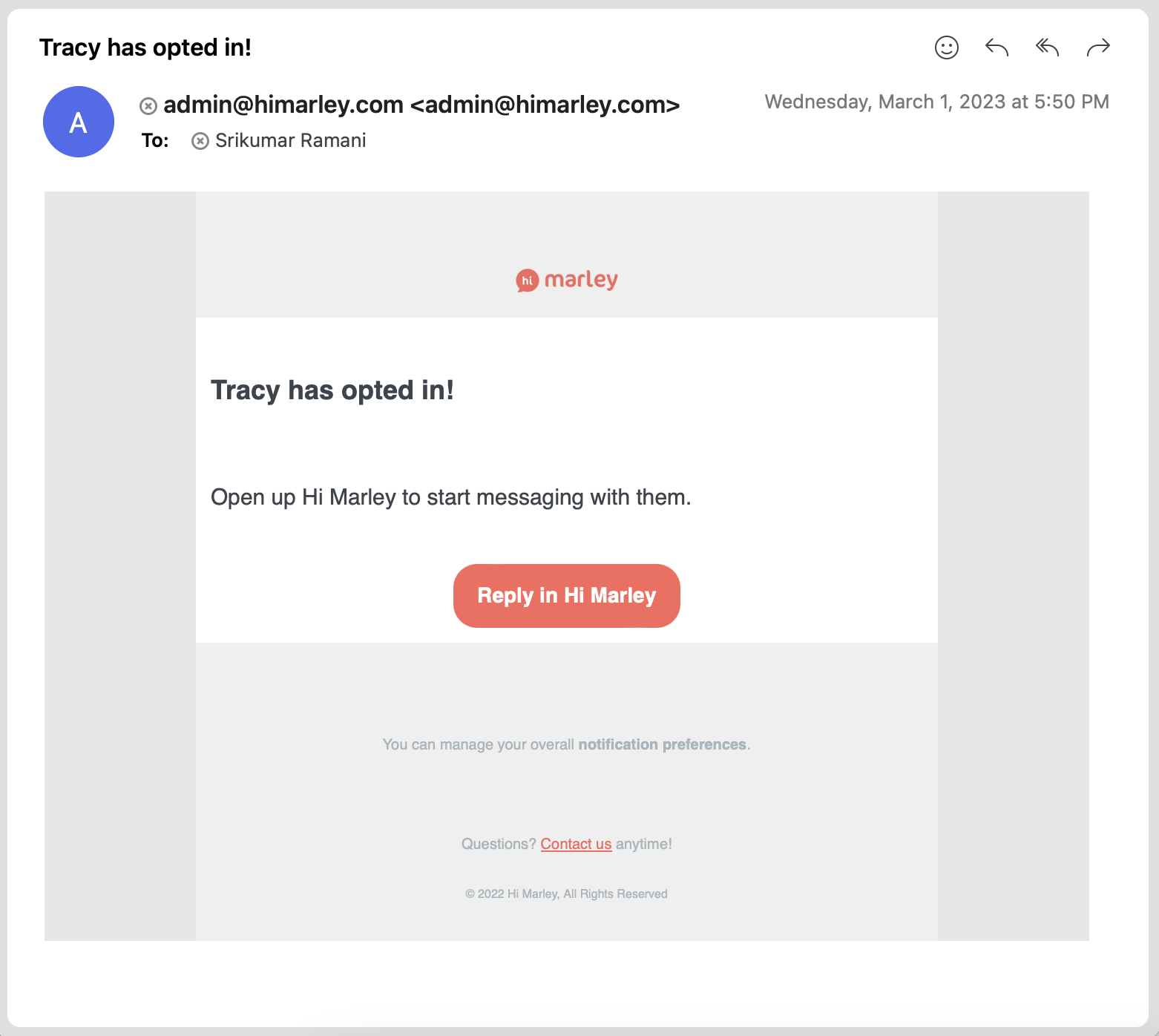 Les notifications par courriel Hi Marley peuvent être configurées au niveau de l'organisation et de l'utilisateur !